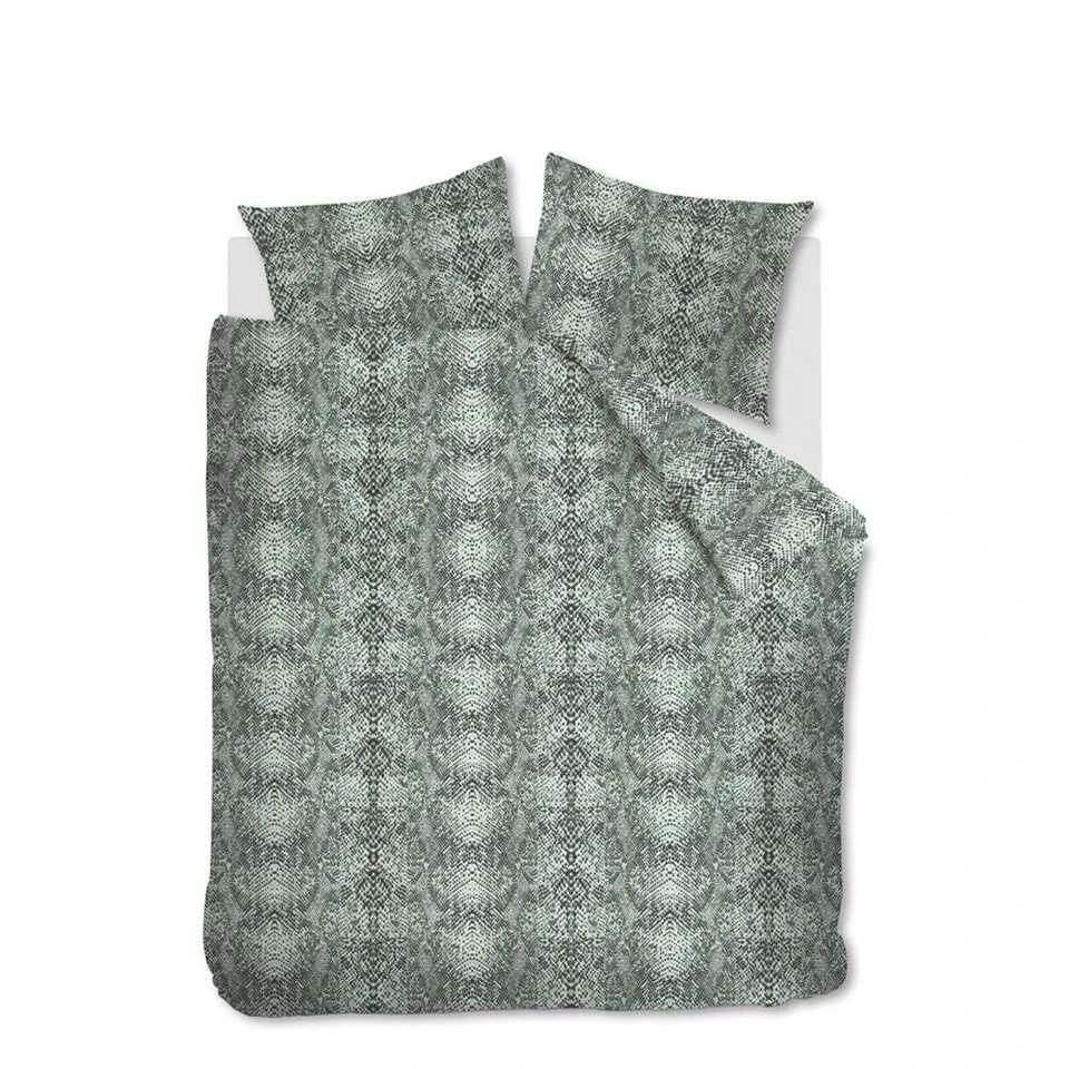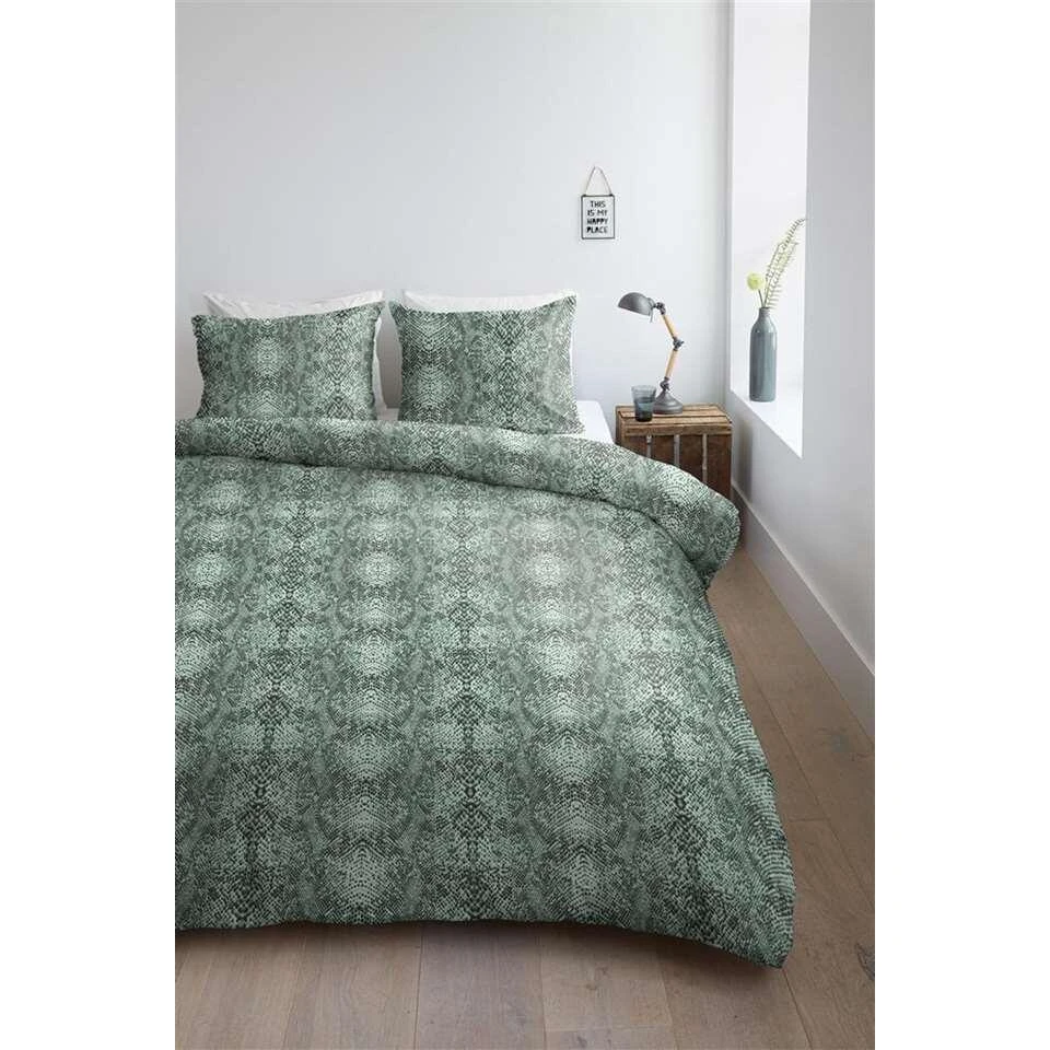 Dekbedovertrek Ruya van Ambiante heeft een slangenprintdessin in de kleur groen. Een opvallende verschijing in je slaapkamer dus. Dit dekbedovertrek is gemaakt van 100% katoen en voelt fijn en zacht aan. Het dekbedovertrek heeft over de gehele breedte aan beide zijden een dubbele instopstrook waardoor het dekbedovertrek gemakkelijk onder het matras gestopt kan worden en koude voeten worden voorkomen. Het dekbedovertrek heeft aan de voor- en achterzijde hetzelfde dessin. Het overtrek kan gewassen worden tot 60 graden, is geschikt voor de wasdroger en kan gestreken worden. Dankzij de hoogwaardige kwaliteit blijft dit overtrek ook na het wassen mooi van vorm en kleur. Met bijpassende kussenslopen.