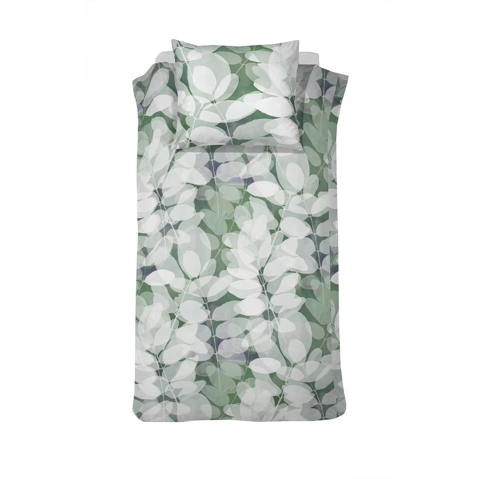 Een natuurprint van gestileerde bladeren staat afgebeeld op het Levy dekbedovertrek van Cinderella, waarmee je eenvoudig de rust en sereniteit van de natuur naar binnen haalt. De bladeren hebben een aquarel effect en zijn op een minimalistische wijze over elkaar heen gelegd waardoor er transparante lagen ontstaan. De koele blauw- en groentinten maken dit ‘Scandic’ plaatje helemaal af.