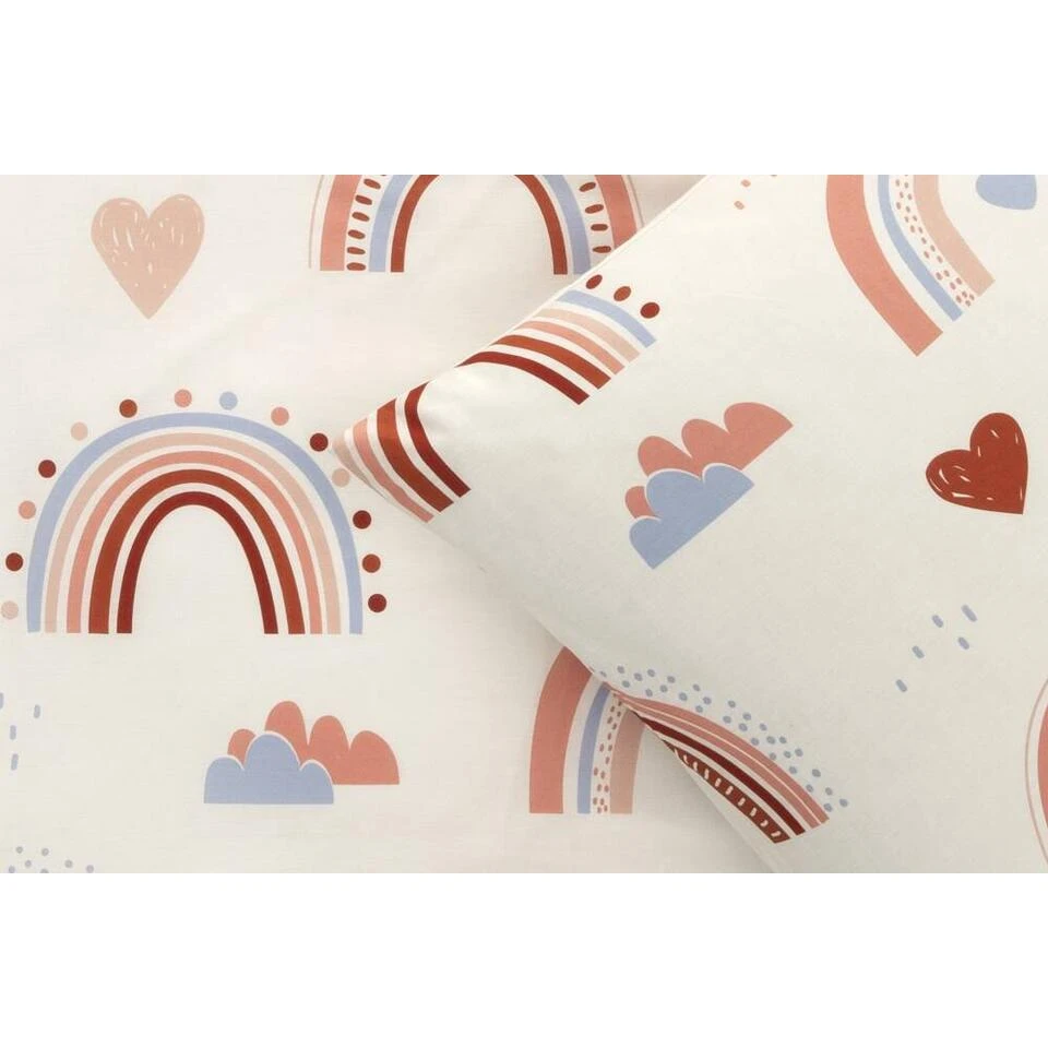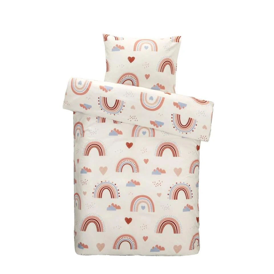 Dekbedovertrek Evi heeft een regenboog thema en een afmeting van 140×200 cm. Het dekbedovertrek is gemaakt van katoen en heeft een flessenhals instopstrook.