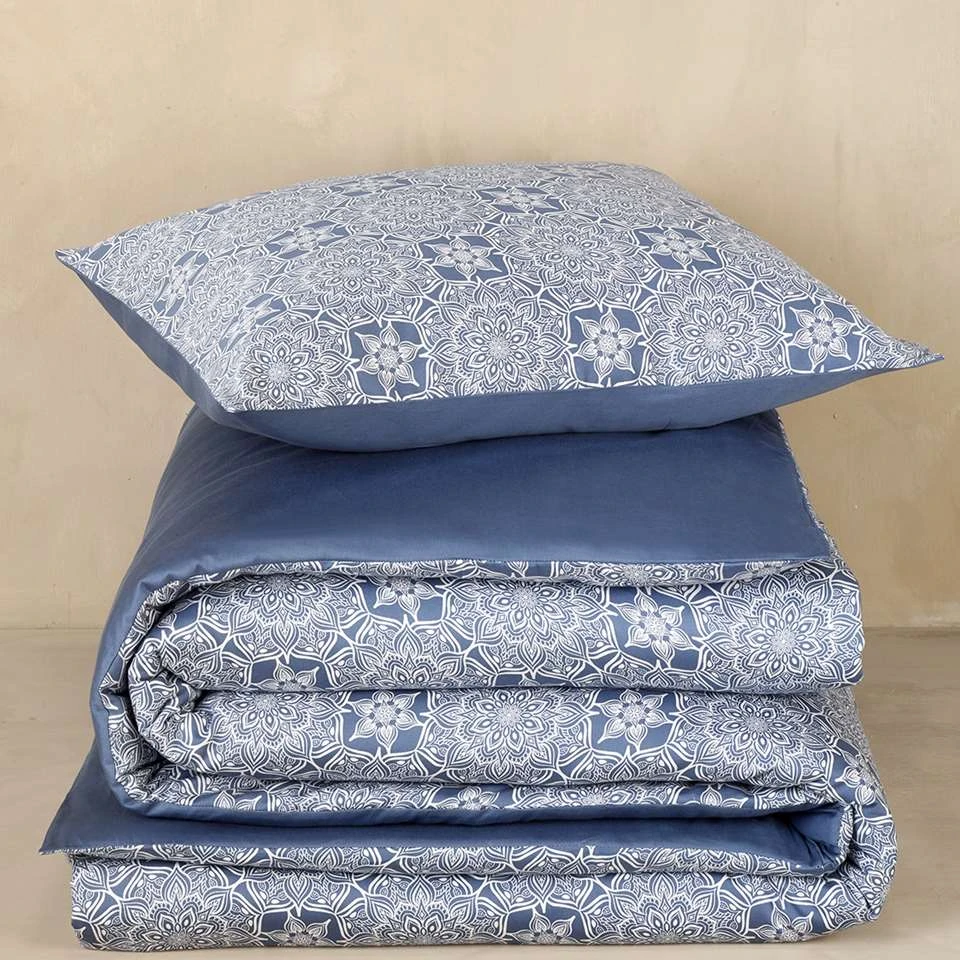 De Witte Lietaer Dekbedovertrek Katoen Satijn, Henna Blue Horizon. Het bedrukt bedlinnen is een lichtgewicht katoen-satijn dat ultra comfortabel aanvoelt door de satijnbinding, het gekamd katoen en de extra zijdeglans. De hoge weefdichtheid zorgt er ook voor dat de stof heel glad aanvoelt. Het dekbedovertrek, alsook de kussensloop, zijn dubbelzijdig en dus omkeerbaar. Het dekbedovertrek heeft een wijde flessenhals en kan daardoor makkelijk over het dekbed getrokken worden. De Witte Lietaer staat bekend om hun kwaliteitsproducten en rijke geschiedenis. Kortom, met een product van De Witte Lietaer koopt u een voortreffelijke ervaring.
