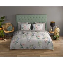 Good Morning Dekbedovertrek “bloemen” – Grijs – (200×200/220 Cm) – Katoen