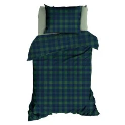Romanette Flanellen Dekbedovertrek Lumberjack Blauw/Groen-2-persoons (200 X 2…