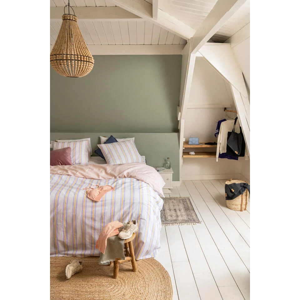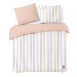 Rise and shine! Sta iedere dag weer stunning op met de Bright Blush en maak je dromen waar. Het dekbedovertrek is een soft beauty met aan de voorkant pastel stripes in wit, lila en geel. De achterkant is effen roze, cause every girl needs good basics, isn’t it? En natuurlijk is dit dekbedovertrek ook gemaakt van 70% gerecycled katoen en 30% nieuw katoen. So sweet dreams and turn around your fave!