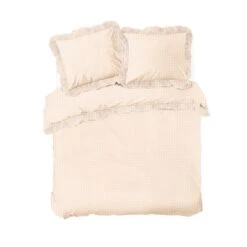 Met een tijdloos ruitje zit je altijd goed. Deze ruit is traditioneel, romantisch en toch een tikkie ondeugend. De looks van dit overtrek geeft bij de Dindi Squad members het gevoel van een ‘Sleepover Party’. Dit pretty dekbedovertrek is voorzien van een ruitpatroon in lichtroze. De randen van de kussenslopen en de bovenrand van het overtrek zijn afgewerkt met volants. De timeless ruit en het duurzame katoen maken van dit beddengoed een sustainable item. Het katoen is namelijk 70% gerecycled katoen en 30% virgin BCI-katoen.