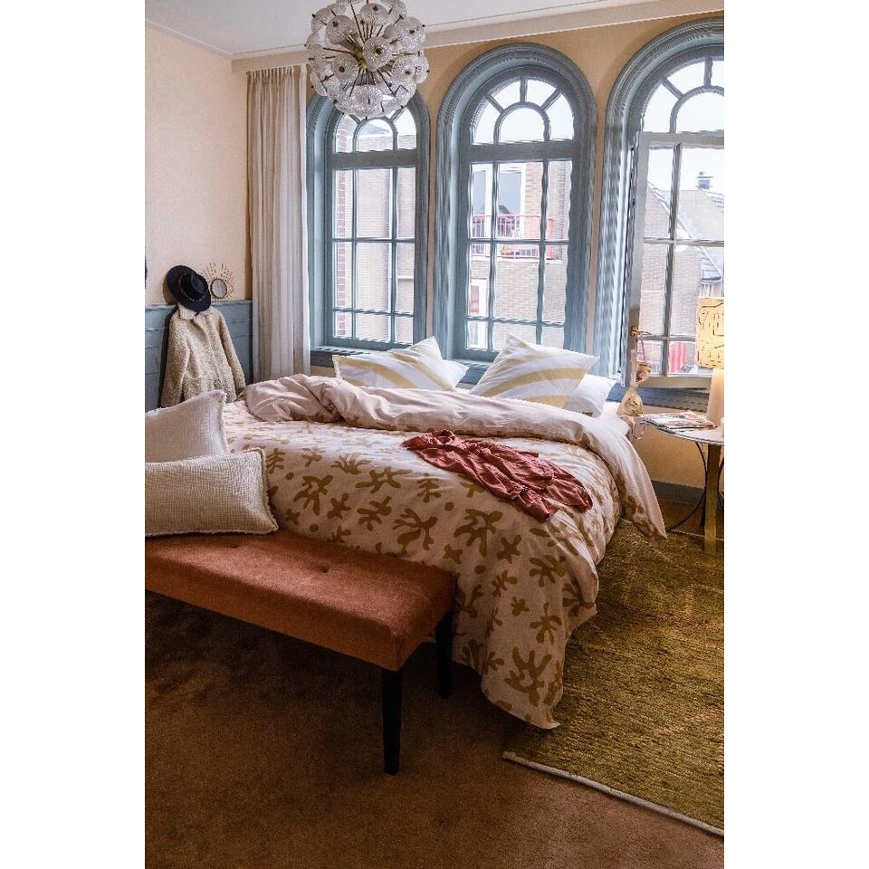 De kussensloopjes hebben een diagonale streep aan beide kanten in een nude kleur. De combinatie is unexpected maar dat maakt het alleen maar meer fashionable! En het Dindi labeltje rechtsonder is een daily reminder zodat jij weet; we’re always there for you! Doordat dit amazing overtrek is gemaakt van 70% gerecycled katoen, denk jij samen met ons aan het environment!