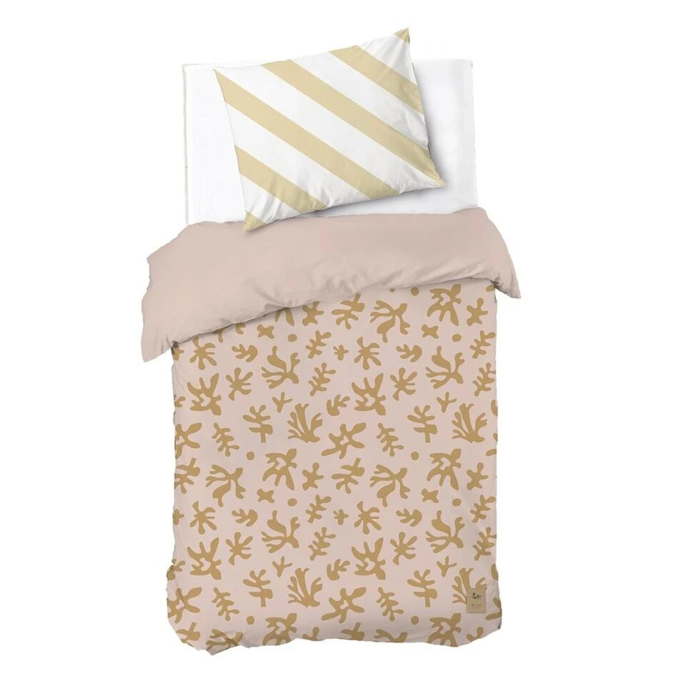 Dindi Home Dekbedovertrek Sweet Leaves – Eenpersoons 140×220 – 100% katoen – Roze