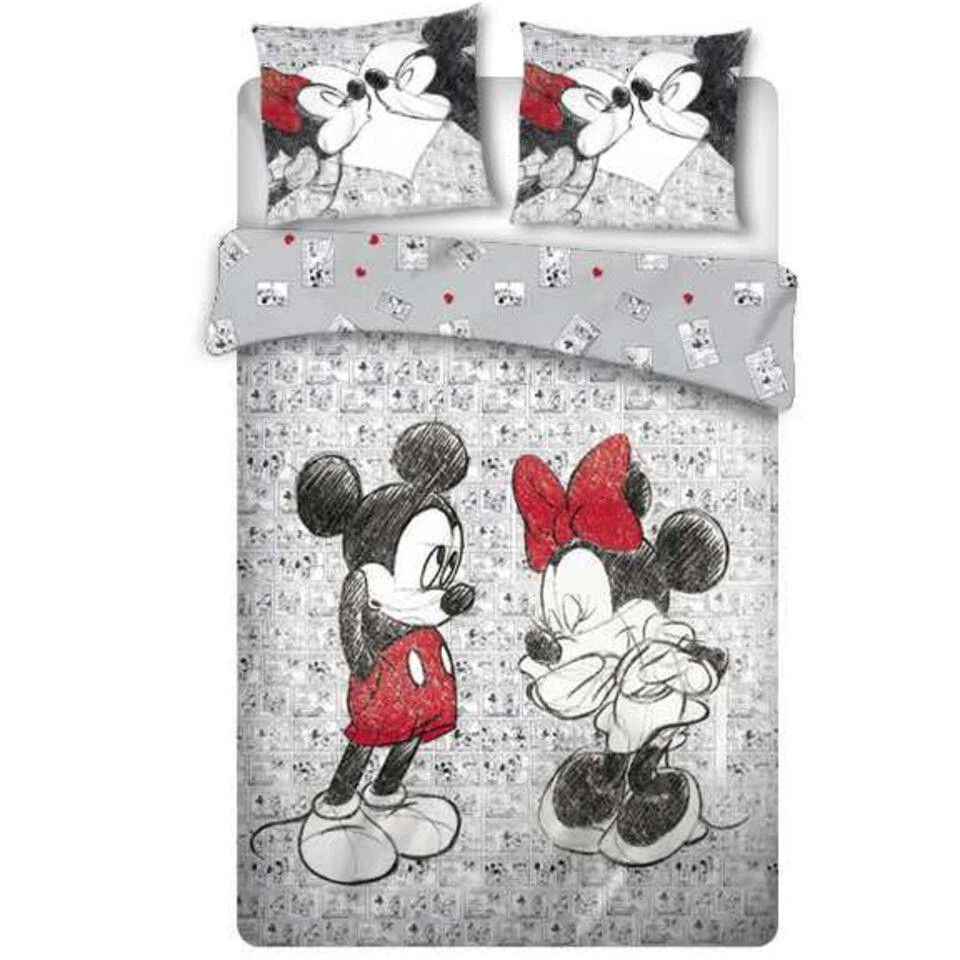 Disney Minnie Mouse Dekbedovertrek, Cartoon. Mooi polyester dekbedovertrek van Minnie en Mickey Mouse. Je ziet de twee karakters tegen een achtergrond van klassieke Disney cartoons. Leuk cadeau voor elke fan van Disney.