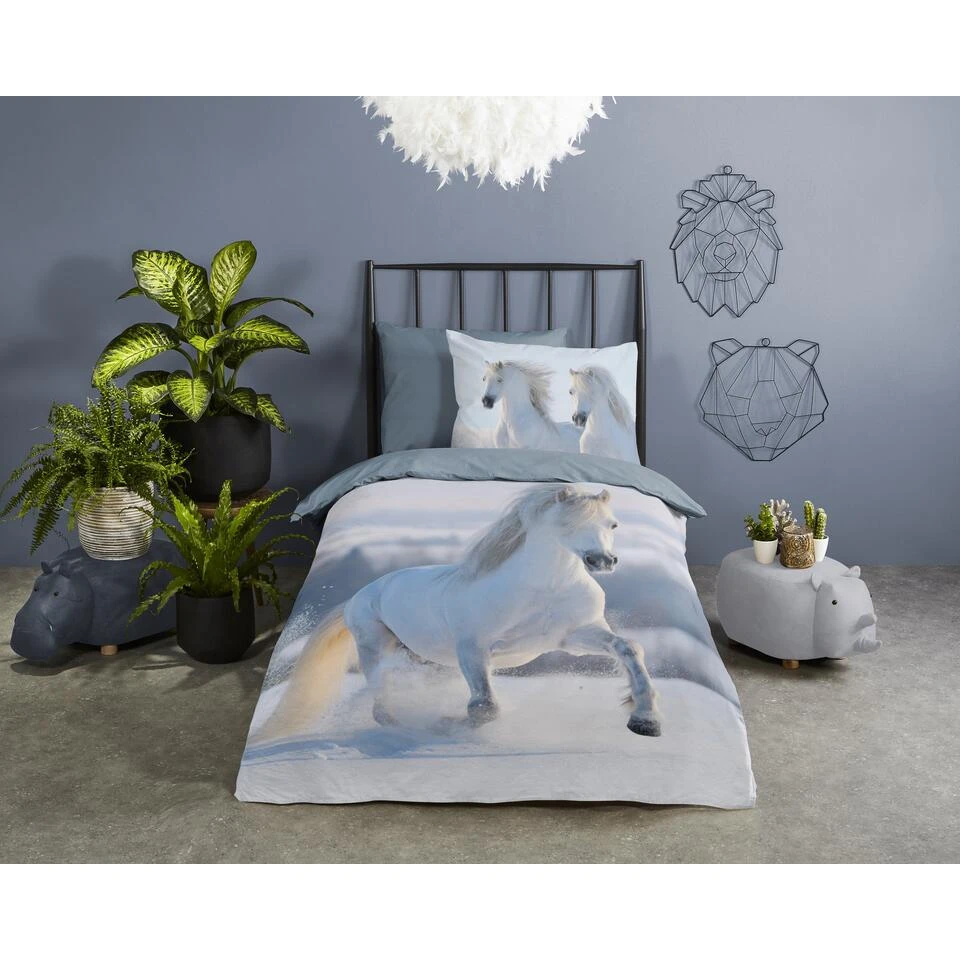 Dekbedovertrek “Amigo” van Good Morning met paarden, in de kleur “Grijs” is gemaakt van 100% Cotton. Deze kwaliteit is ademend, vocht absorberend en voelt zacht en soepel aan.