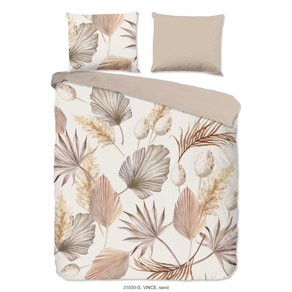 Dekbedovertrek “Vince” van Good Morning met bladeren, in de kleur “Zand” is gemaakt van 100% katoen. Deze kwaliteit is ademend, vochtabsorberend en voelt zacht en soepel aan. Dit mooie dekbedovertrek fleurt iedere slaapkamer op en is geschikt voor ieder jaargetijde. Het katoenen dekbedovertrek is heerlijk koel in de zomer en geeft warmte in de winter.
