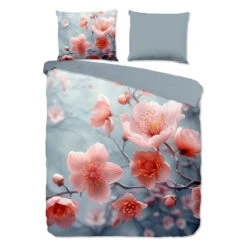 Good Morning Dekbedovertrek “bloemen” – Grijs – (200×200/220 Cm) – Katoen