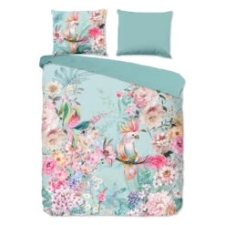 Dekbedovertrek “Emma” van Good Morning met tropische print, in de kleur “Aqua” is gemaakt van 100% Cotton. Deze kwaliteit is ademend, vocht absorberend en voelt zacht en soepel aan.