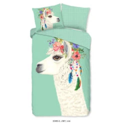 Dekbedovertrek “Joey” van Good Morning met alpaca, in de kleur “Mint” is gemaakt van 100% Cotton. Deze kwaliteit is ademend, vocht absorberend en voelt zacht en soepel aan.