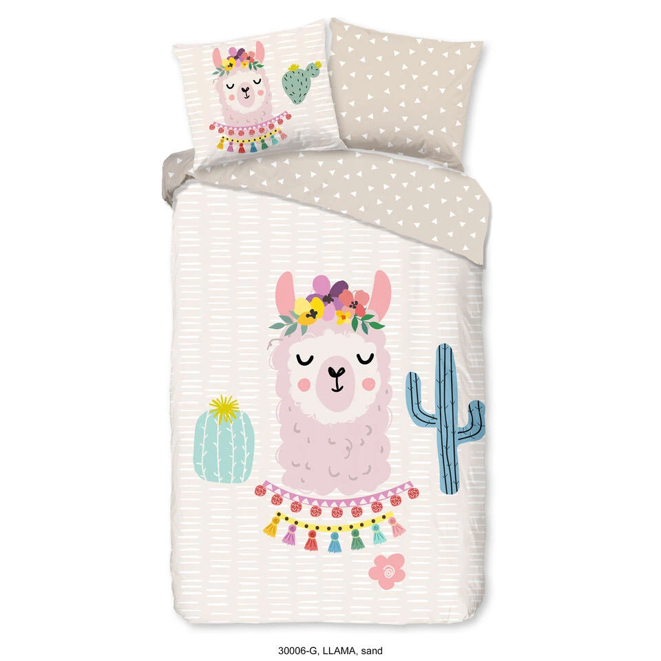 Good Morning Dekbedovertrek “Llama” – Zand – (140×220 Cm)