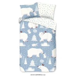 Dekbedovertrek “Northpole” van Good Morning met ijsbeer, in de kleur “Blauw” is gemaakt van 100% geruwde 100% Cotton/ Flannel. Deze warme, zachte stof is zeer geschikt voor de wintermaanden, ademend en vocht absorberend.