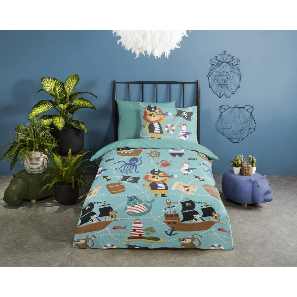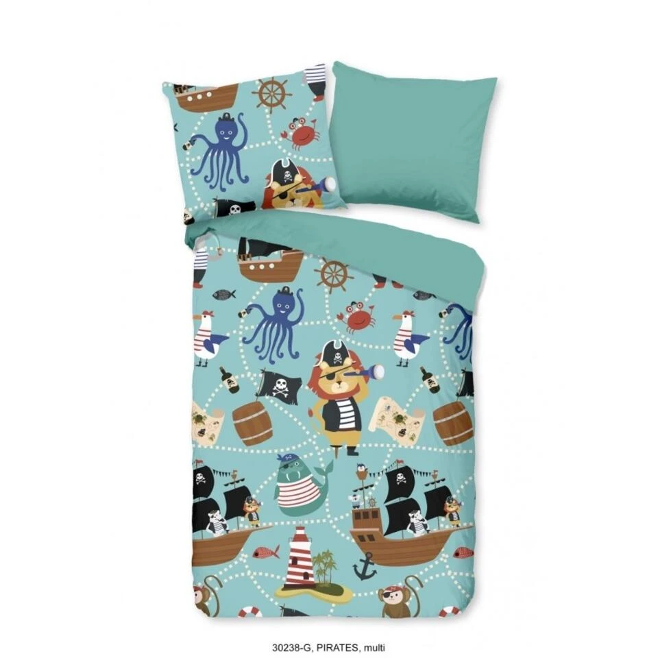 Good Morning Dekbedovertrek “Pirates” – Aqua – (140×220 Cm)