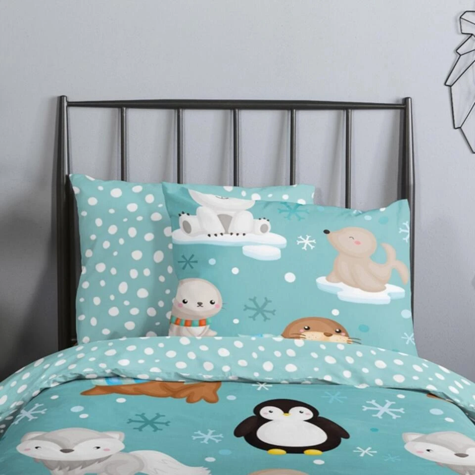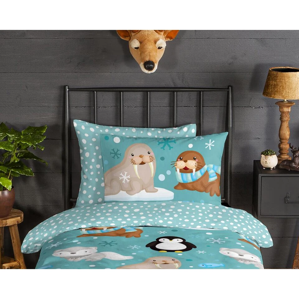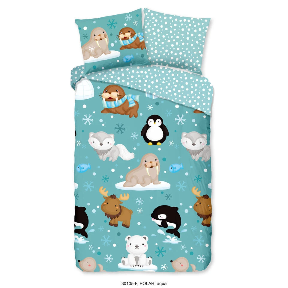 Dekbedovertrek “Polar” van Good Morning met dieren, in de kleur “Aqua” is gemaakt van 100% geruwde 100% Cotton/ Flannel. Deze warme, zachte stof is zeer geschikt voor de wintermaanden, ademend en vocht absorberend.