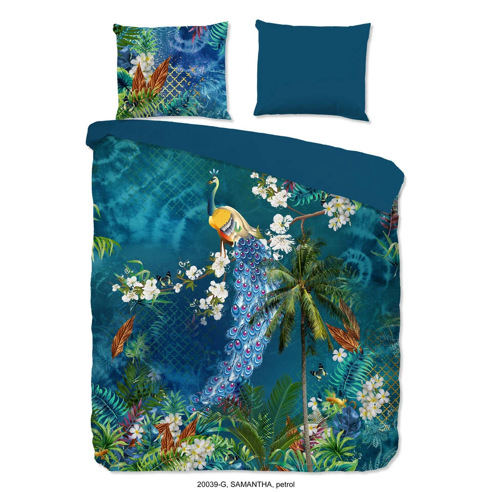 Dekbedovertrek “Samantha” van Good Morning met pauw, in de kleur “Petrol” is gemaakt van 100% Cotton. Deze kwaliteit is ademend, vocht absorberend en voelt zacht en soepel aan.