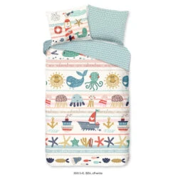 Dekbedovertrek “Sea” van Good Morning met strandthema, in de kleur “Multi” is gemaakt van 100% Cotton. Deze kwaliteit is ademend, vocht absorberend en voelt zacht en soepel aan.