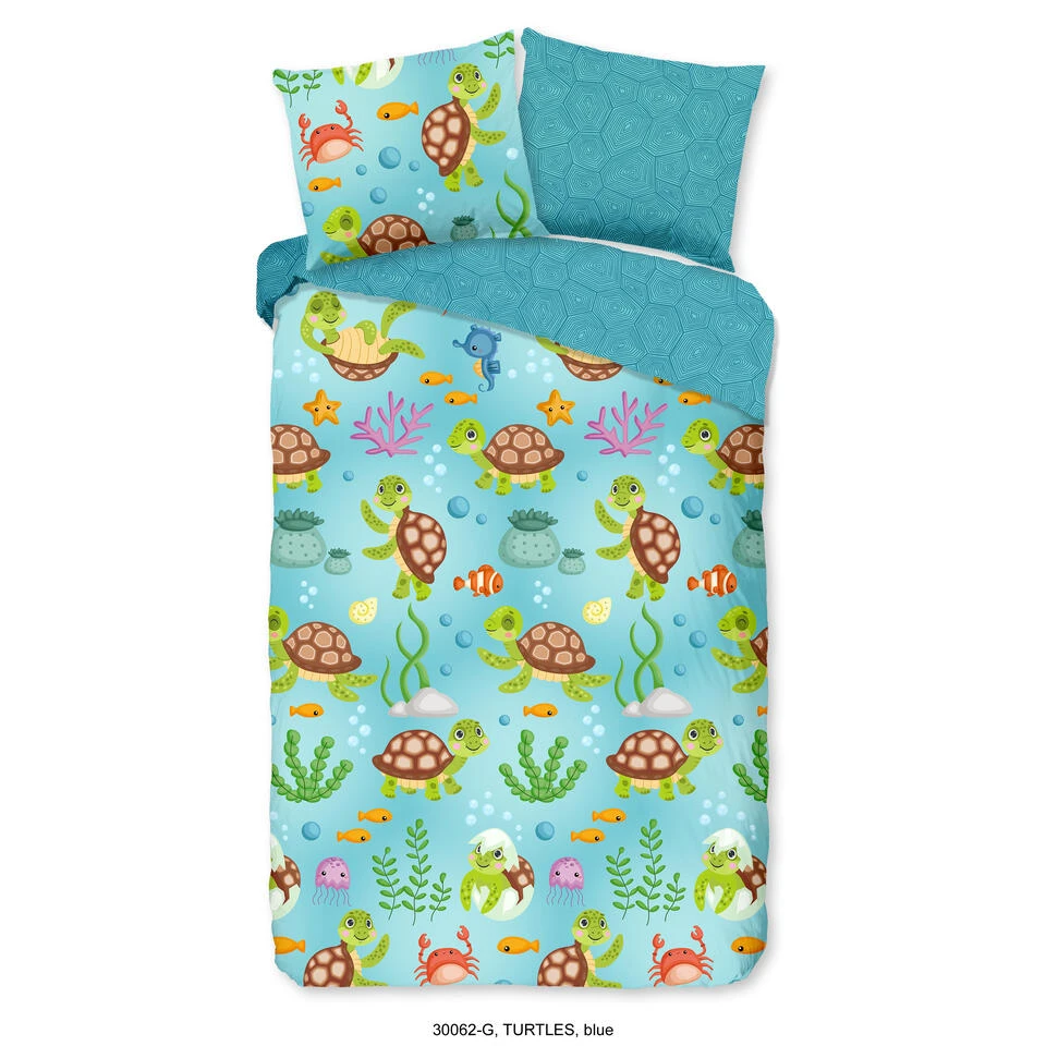 Good Morning Dekbedovertrek “Turtles” – Blauw – (140×220 Cm)