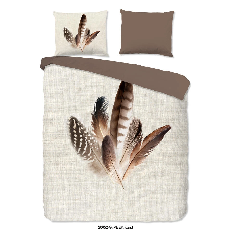Dekbedovertrek “Veer” van Good Morning met veren, in de kleur “Zand” is gemaakt van 100% Cotton. Deze kwaliteit is ademend, vocht absorberend en voelt zacht en soepel aan.