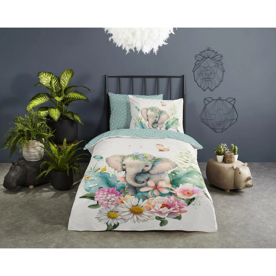 Kinderdekbedovertrek “Eli” van Good Morning met bloemen met een olifant, in de kleur “Multi” is gemaakt van 100% katoen. Deze kwaliteit is ademend, vochtabsorberend en voelt zacht en soepel aan. Dit leuke kinderdekbedovertrek is een toevoeging aan iedere kinderkamer en is geschikt voor ieder jaargetijde. Het katoenen dekbedovertrek is heerlijk koel in de zomer en geeft warmte in de winter.