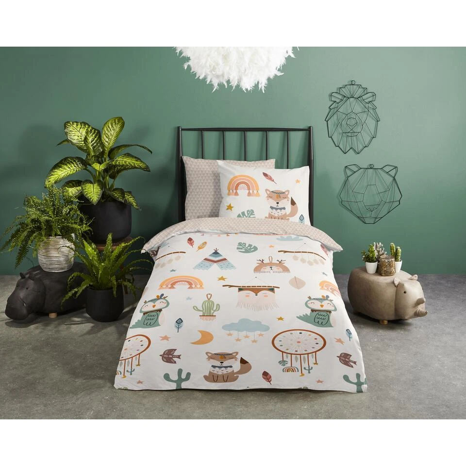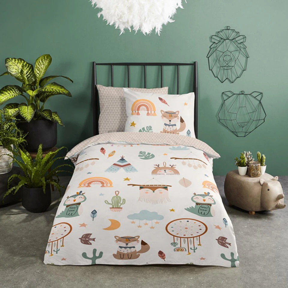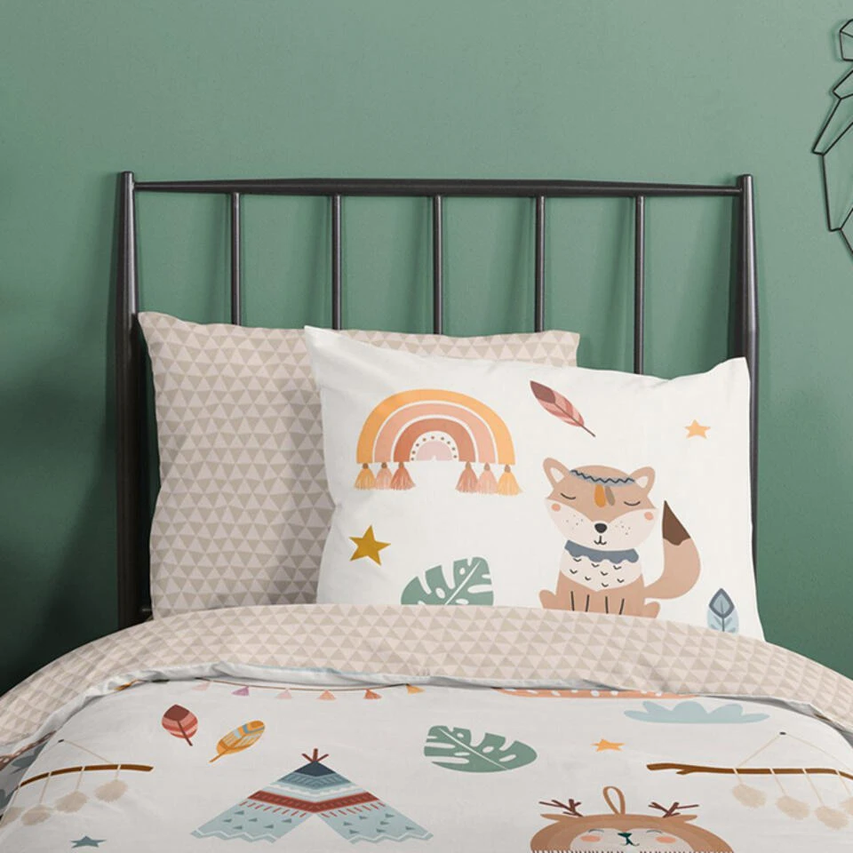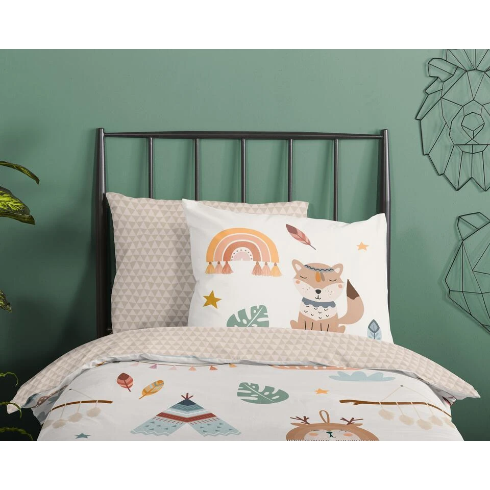 Kinderdekbedovertrek “Remi” van Good Morning met tipi-tenten / boho, in de kleur “Zand” is gemaakt van 100% katoen. Deze kwaliteit is ademend, vochtabsorberend en voelt zacht en soepel aan. Dit leuke kinderdekbedovertrek is een toevoeging aan iedere kinderkamer en is geschikt voor ieder jaargetijde. Het katoenen dekbedovertrek is heerlijk koel in de zomer en geeft warmte in de winter.