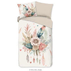 Dekbedovertrek “Videl” van Good Morning met bloemen en veren, in de kleur “Ecru” is gemaakt van 100% katoen. Deze kwaliteit is ademend, vochtabsorberend en voelt zacht en soepel aan. Dit mooie dekbedovertrek fleurt iedere slaapkamer op en is geschikt voor ieder jaargetijde. Het katoenen dekbedovertrek is heerlijk koel in de zomer en geeft warmte in de winter.