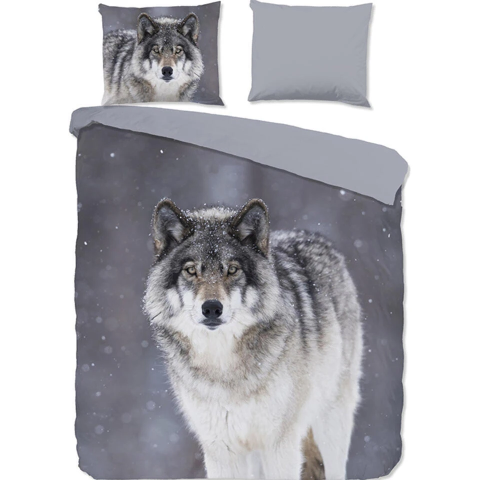 Good Morning Wolfie Flanel Dekbedovertrek Grijs