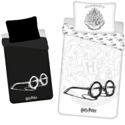 Harry Potter Dekbedovertrek Glow in the Dark, Bril. Zoek je een echter blikvanger voor de slaapkamer en ken je alle Harry Potter films dromen? Dan is deze glow in the dark dekbedovertrek echt wat voor jou. Bij genoeg daglicht zal het bekende brilletje van Harry Potter ’s nachts oplichten. Als je de overtrek een klein beetje openslaat dan zie je dat deze dubbelzijdig bedrukt is, wat leuke mogelijkheden geeft. Wordt geleverd met bijpassend, extra groot, kussensloop. Een geweldige cadeau-idee voor de echte Harry Potter fan!