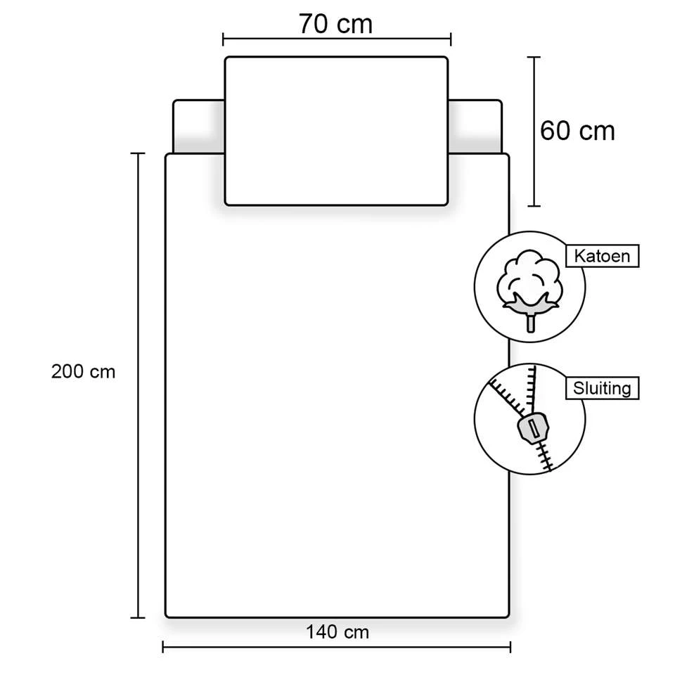 - Kussensloop: 60 x 70 cm