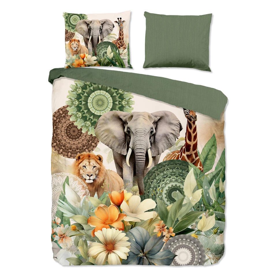 Dit betreft een lits-jumeaux dekbedovertrek (240×200/220 cm + 2 kussenslopen). Deze set bestaat uit 1 dekbedovertrek dat geschikt is voor dekbedden van 200 tot 220 cm lang en 2 kussenslopen van 60×70 cm. Het dekbedovertrek heeft een dubbel doorlopende instopstrook van 20 cm en een totale lengte van circa 240 cm.