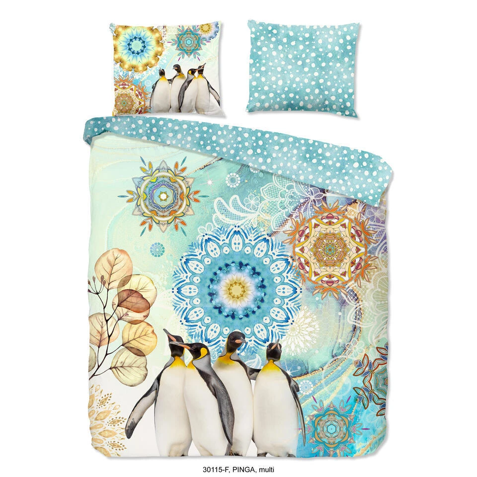 Dekbedovertrek “Pinga” van HIP met mandala’s en pinguins, in de kleur “Multi” is gemaakt van 100% geruwde 100% Cotton/ Flannel. Deze warme, zachte stof is zeer geschikt voor de wintermaanden, ademend en vocht absorberend.
