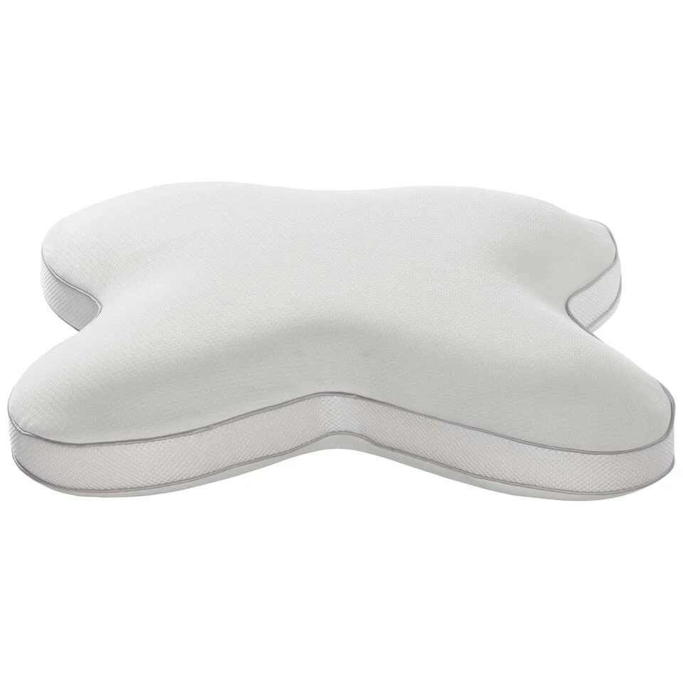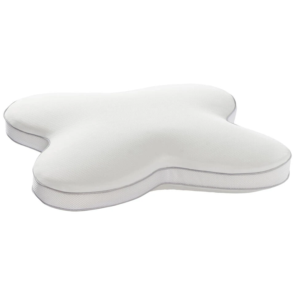Een vlinderkussen dankt zijn naam aan de unieke vlindervorm. Het kussen heeft een uitsparing in het midden voor het hoofd, met verhoogde randen die perfect aansluiten bij de natuurlijke kromming van je nek. Deze slimme vorm zorgt voor een betere uitlijning van de nekwervels en voorkomt overbelasting van spieren en gewrichten.