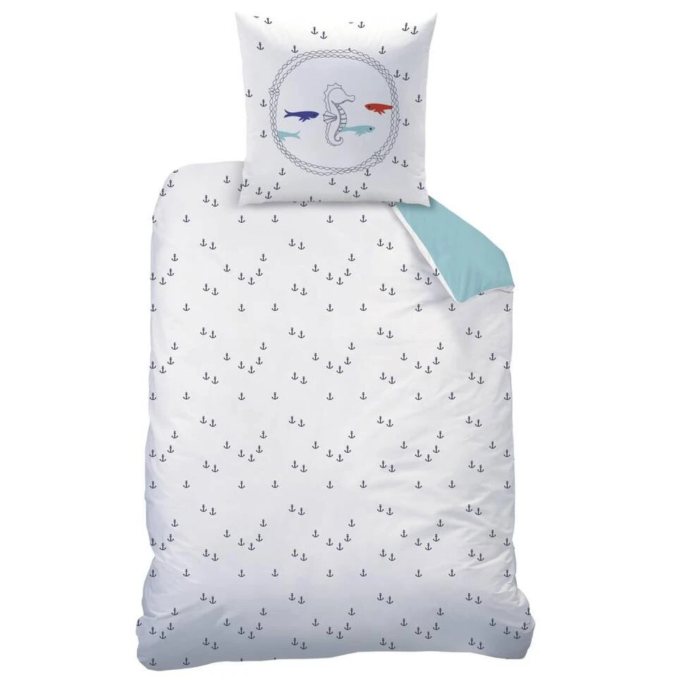 Matt & Rose Dekbedovertrek Omar. Dit leuke dekbedovertrek is voor jonge matrozen een echte smaakmaker in de slaapkamer. De coole kreeft is omgeven door zeesymbolen zoals ankers, zeepaardjes en vissen. Leef zelf het leven onder water en kruip ’s nachts lekker onder de golven. Met een aankoop van Matt & Rose luxe slaaptextiel kunt u aan op kwaliteit en comfort.