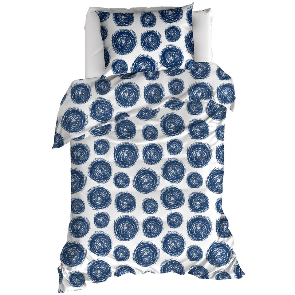 Moodit Dekbedovertrek, Odil Orba. Dit mooie eenpersoons dekbedovertrek uit de Odil collectie van Moodit heeft een mooi grafisch dessin van blauwe cirkels, wat prima in een moderne woonstijl past. De print is aan beide zijden bedrukt en komt ook terug in de kussensloop. Gemaakt van 100% katoen, wat bijdraagt aan een comfortabele nachtrust door de ademende en sterk vocht-absorberende eigenschappen. De Odil dekbedden zijn prima te combineren met de uni-color collectie Basil van Moodit. Mix and match en zet de sfeer naar jouw hand, altijd en overal!