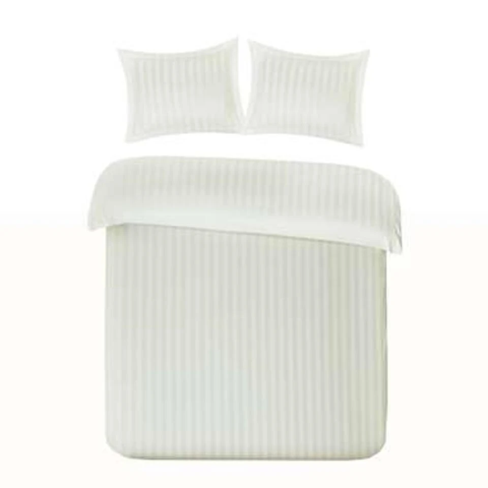 Dit Chique katoen-satijn dekbedovertrek met elegante lengtestrepen is een must have voor in je slaapkamer! Het dekbedovertrek is gemaakt van 100% Katoen-Satijn en heeft dus ook de fijne eigenschappen van katoen. Een katoen-satijnen dekbedovertrek voelt zachter en gladder aan dan een standaard katoenen dekbedovertrek, Dit komt door de satijnweving dat gebruikt wordt het katoen wordt namelijk veel dichter op elkaar geweven dus er worden meer draden hiervoor gebruikt. Hoe hoger de draaddichtheid hoe beter de kwaliteit van het dekbedovertrek! Het straalt luxe maar uit maar het is ook zeer comfortabel.