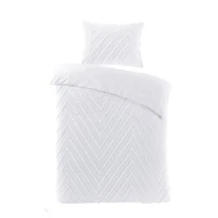 Het dekbedovertrek heeft een tufted streep patroon. Het straalt rust uit en laat zich makkelijk combineren met andere kleuren.