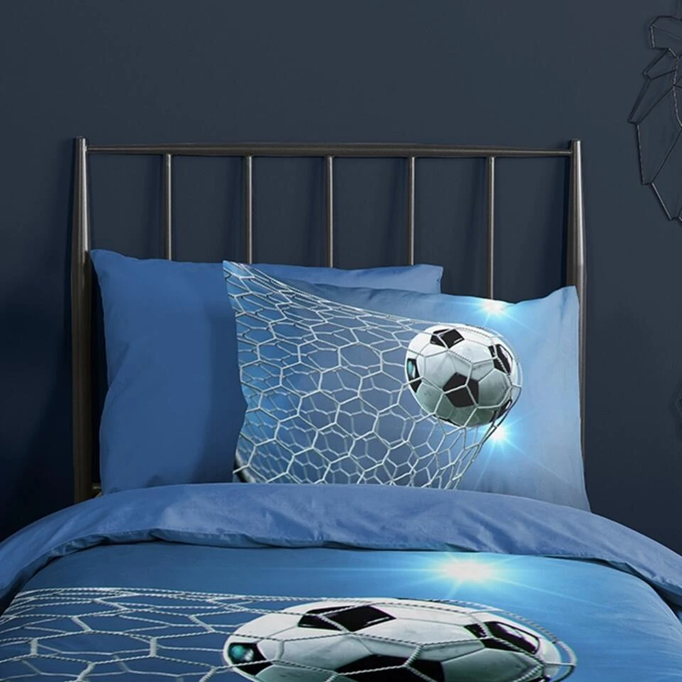 Dekbedovertrek “Fans” van Pure met voetbal, in de kleur “Blauw” is gemaakt van 100% Microfiber. Het is een prettige stof, gemaakt van synthetische garen maar vergelijkbaar met het natuurlijke materiaal katoen, doordat het zacht en soepel aanvoelt. Het is geschikt voor ieder jaargetijde en door de lichte glans heeft het een luxe uitstraling. Na het wassen is deze stof snel droog en kreukt niet tot nauwelijks waardoor strijken (vrijwel) niet nodig is. Ook beschermt het tegen bacteri’n, vuil en huisstofmijt