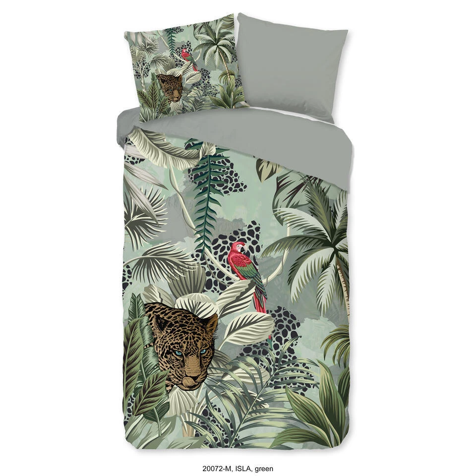 Dekbedovertrek “Isla” van Pure met jungle print, in de kleur “Groen” is gemaakt van 100% Microfiber. Het is een prettige stof, gemaakt van synthetische garen maar vergelijkbaar met het natuurlijke materiaal katoen, doordat het zacht en soepel aanvoelt. Het is geschikt voor ieder jaargetijde en door de lichte glans heeft het een luxe uitstraling. Na het wassen is deze stof snel droog en kreukt niet tot nauwelijks waardoor strijken (vrijwel) niet nodig is. Ook beschermt het tegen bacteri’n, vuil en huisstofmijt