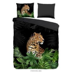 Dekbedovertrek “Mala” van Pure met luipaard, in de kleur “Zwart” is gemaakt van 100% polyester/microfiber. Het is een prettige stof, dat soepel om je heen valt en ook nog eens licht van gewicht is. Het is geschikt voor ieder jaargetijde en door de lichte glans heeft het een luxe uitstraling. Na het wassen is deze stof snel droog en kreukt niet tot nauwelijks waardoor strijken (vrijwel) niet nodig is.