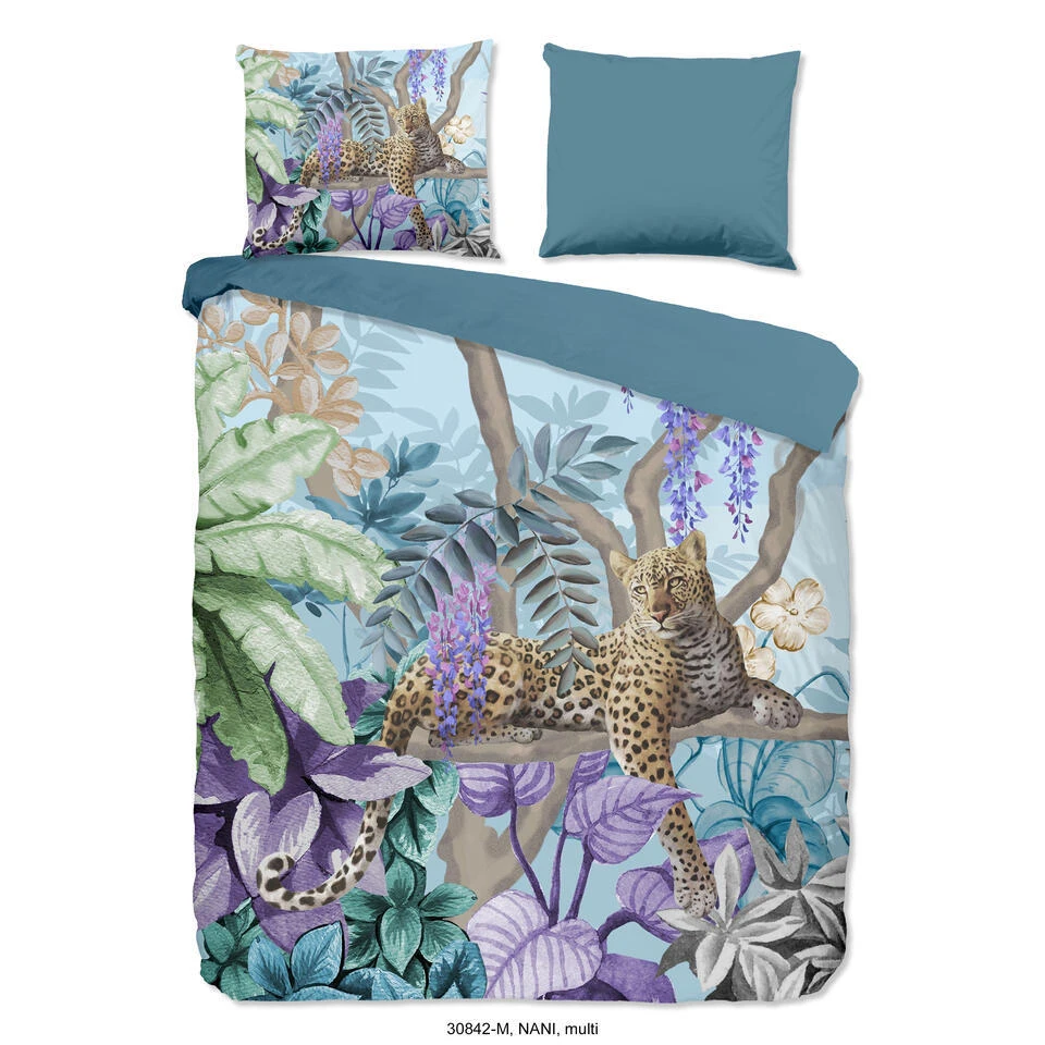 Dekbedovertrek “Nani” van Pure met jungle print, in de kleur “Multi” is gemaakt van 100% Microfiber. Het is een prettige stof, gemaakt van synthetische garen maar vergelijkbaar met het natuurlijke materiaal katoen, doordat het zacht en soepel aanvoelt. Het is geschikt voor ieder jaargetijde en door de lichte glans heeft het een luxe uitstraling. Na het wassen is deze stof snel droog en kreukt niet tot nauwelijks waardoor strijken (vrijwel) niet nodig is. Ook beschermt het tegen bacteri’n, vuil en huisstofmijt
