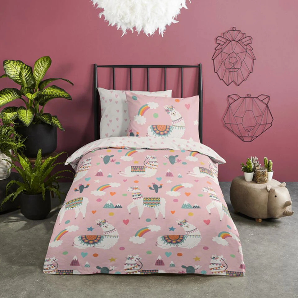 Pure Kinderdekbedovertrek “lama / Alpaca” – Roze – (140×200/220 Cm) – Microfiber