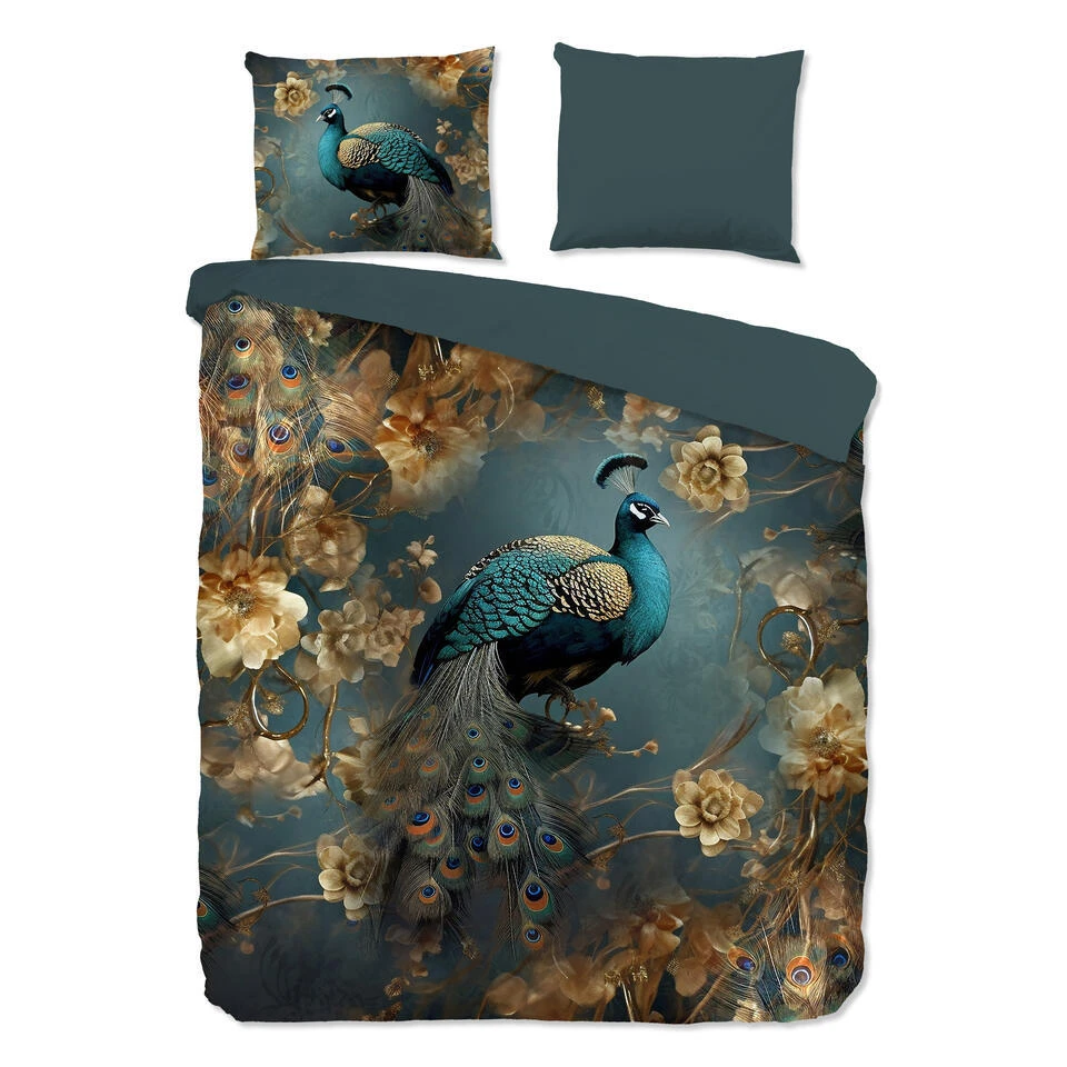 Pure Pauwen Dekbedovertrek Petrol-2-persoons (200 X 200/220 Cm)